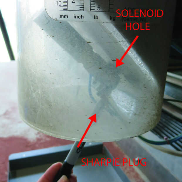 Suavemente tire del solenoide de la tolva granate y pegar la parte inferior de la Sharpie en el agujero para conectar.