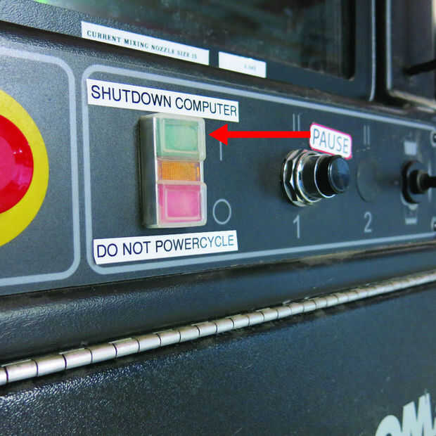 Muelle 9 solución de problemas: Rutina de inicio de mañana por chorro de agua OMAX (1 / 6 paso)