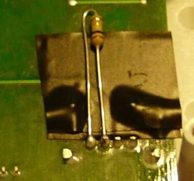 Cortar un par de pequeños trozos de cinta aislante y palo les (dos capas) sobre el 4 soldadura de puntos para el conector USB como se muestra en la imagen. (Esa foto fue tomada después de que una de las resistencias ya era soldada en el lugar. Que tomé antes de soldar ese resistor salió borrosa, así que tuve que utilizar este uno.)