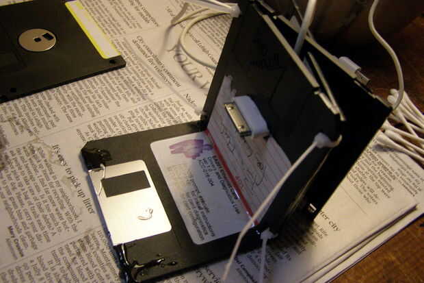 blando muelle para apple productos.Wath ¿te necesita?4 cosas11 disquetes-pegamento (pegamento de cena) usé zap una brecha fina-una manzana del muelle cable-una manzana producto (yo usé un Ipad) pero también funciona con ipod y iphonePaso 1: hacer la