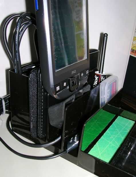 Esto es específicamente para aquellos de nosotros que debe llevar más de un dispositivo debido al trabajo y las obligaciones personales, y que quieren mantener los dispositivos y los relacionados con cosas perfectamente acorralados en un escritorio. Para mí, eso significa una iPAQ pda y un teléfono móvil; diversos medios de comunicación como las unidades flashes y tarjetas SD; de carga y sincronización de cables que utilizan para conseguir sacudido alrededor en el escritorio o golpeaban todo en cajones.