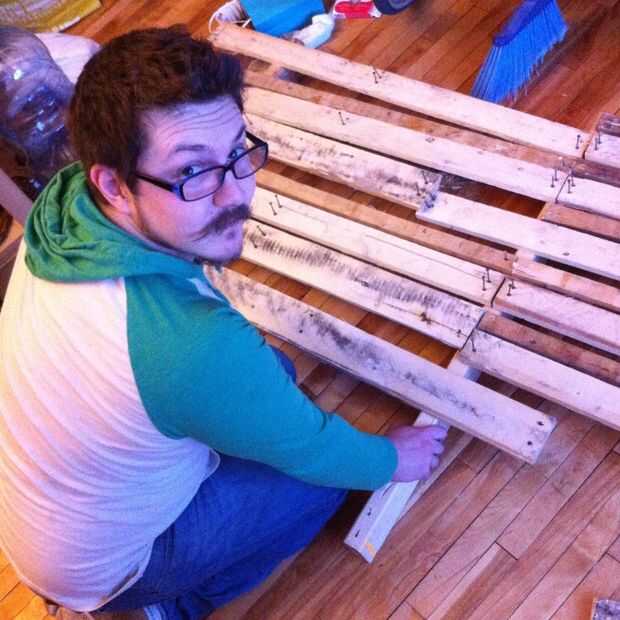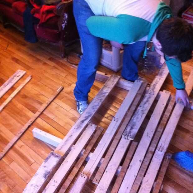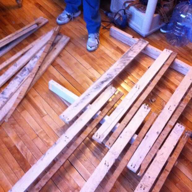Los listones sobre la plataforma que han colocado a un extremo y he tomado un solo listón y utilizado como un poste central. Desea colocar listones de suficiente para que esté por encima de la altura de su cama, debajo de la altura de su cama listones no son necesarios, no verás.