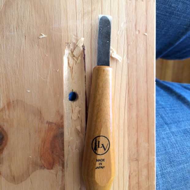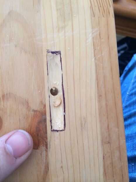 En la primera pieza se desea tallar un camino para que el cable funcionando a lo largo del agujero en la parte posterior de la Junta. y ampliar el agujero, por lo que se puede doblar el cable de abajo empuje el cable de respaldo.