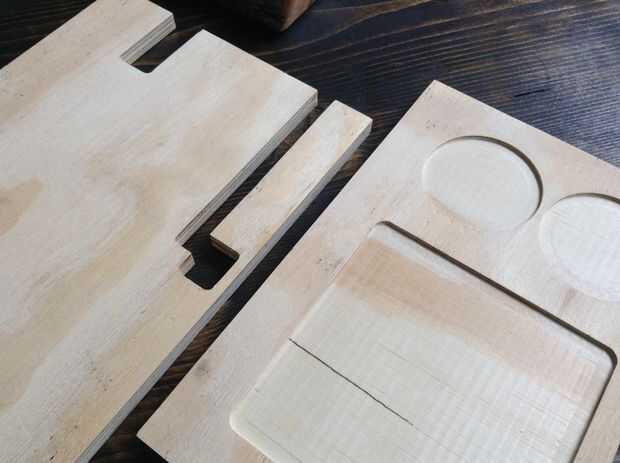 El espacio debajo el cable de carga no deja mucho material para mantener la sensación de madera restante super segura, que planeo vender éstos y envío al exterior, por lo que es importante asegurarse de que están parados para arriba a Canada Post. Los "pozos" para el cambio tendrá que ser un poco más también.