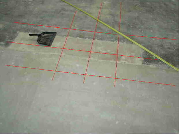 Para la planificación inicial, se creó un mapa de elevación del piso base hormigón existente utilizando un nivel láser. Primero marca en líneas de contorno en los puntos más altos y más bajos del piso de cemento, luego dibujé en contornos de elevación de 1/4". Esto me dijo que el piso debe ser más gruesos y más delgados para hacer la elevación final. Pisos de concreto son raramente perfectamente nivelada. En nuestro caso tuvimos un lugar en el centro de 1 ¾" desde el nivel de base en el extremo occidental entero de la habitación. He marcado las elevaciones sobre el concreto sí mismo en una red de 18" y dibujó entonces en el contorno para definir mi mapa de subnivel. La red define mis puntos de control final-planta, elevación. El problema fue un antiguo hogar de una chimenea que había sido incorporado en la mitad viejo suelo de hormigón y el contratista había igualado a los niveles existentes para crear una apariencia de un piso suave que fluye hacia fuera en su nueva expansión de la antigua sala.