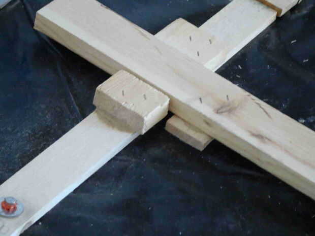 Donde dos muelles durmientes fueron emparejados por un bloques de más largo plazo, desplazamiento alineación fueron montados en la parte inferior de la durmiente durmiente soltados uno Ramset detrás de la Unión para evitar que la articulación deslizante abierto. Los bloques de deslizamiento Unidos con un pegamento muy fuerte y entonces con grapas en su lugar para sostener que las piezas seguro hasta que el adhesivo tenga tiempo para completamente.
