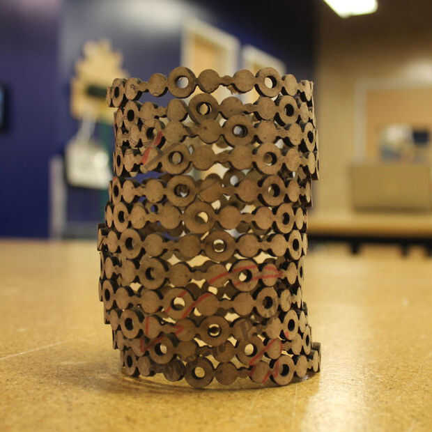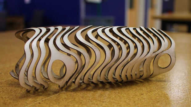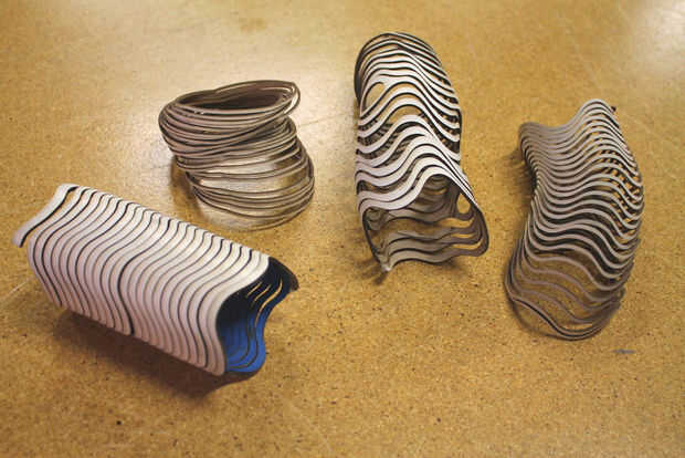 Modelo conceptualEsta pieza de metal flexible se creó utilizando un dibujo 2D. La técnica utilizada se llama ranurado, se refieren al estudio de Aaron Porterfield de patrones diferentes de ranurado.En este instructable entro sobre cómo preparé el lás