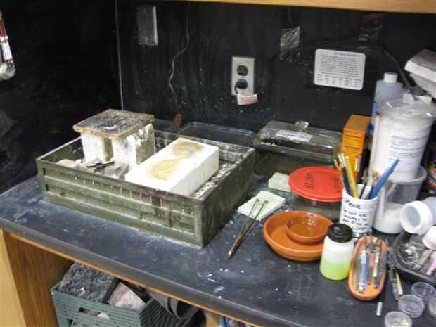 Se muestra es las tiendas de la estación de soldadura, utiliza los ladrillos de fuego, cobre pickle (elimina algunos escala) y neutralizador de la solución de salmuera de cobre.