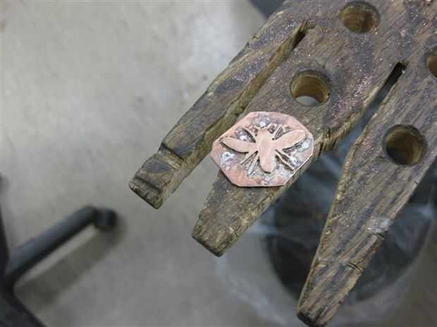 Usé duro soldadura para fijar el patrón de la abeja a la placa de soporte.