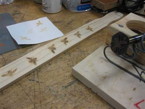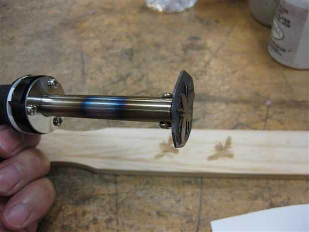 Con una ligera presión de la matriz caliente sobre la madera - creó el patrón de quemado de la abeja.