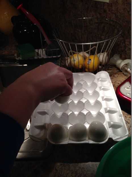 -Una vez los huevos, retirar del agua hielo y coloque en la caja de cartón.