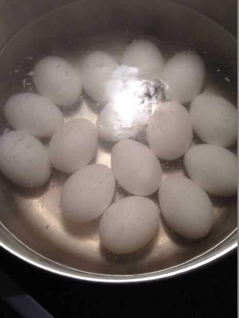 -Cuando el contador ha salido, y han terminado los huevos hirviendo, apagar la estufa, retire la olla de la hornilla caliente en otro quemador que no ha sido en y quitar los huevos del agua hirviendo. * PRECAUCIÓN: el agua hirviendo y bote estará muy caliente! Tenga cuidado de no quemarse.
