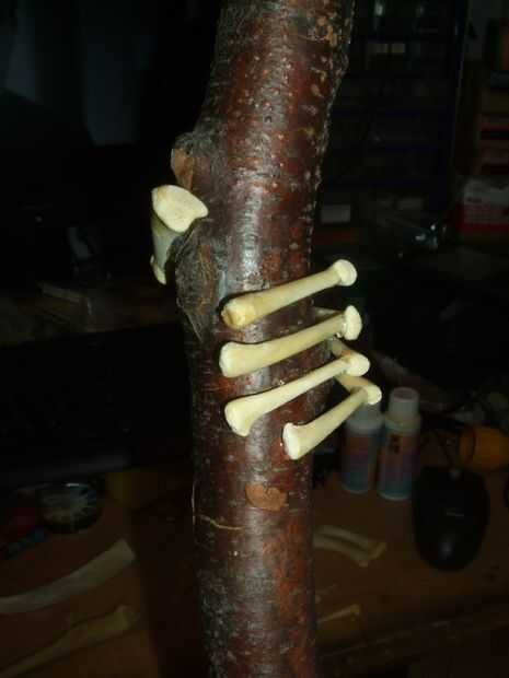 Desde allí continué con las primeras cuatro piezas, y luego que pasó a la segunda mitad de los dedos. Los pegué a la rama y para el extremo roto de los huesos ya pegados, buscando buenos empalmes y convirtiendo cada pieza en todos los sentidos antes de decidir sobre cómo añadir. En caso de duda, vaya para la distancia un poco a la rama.