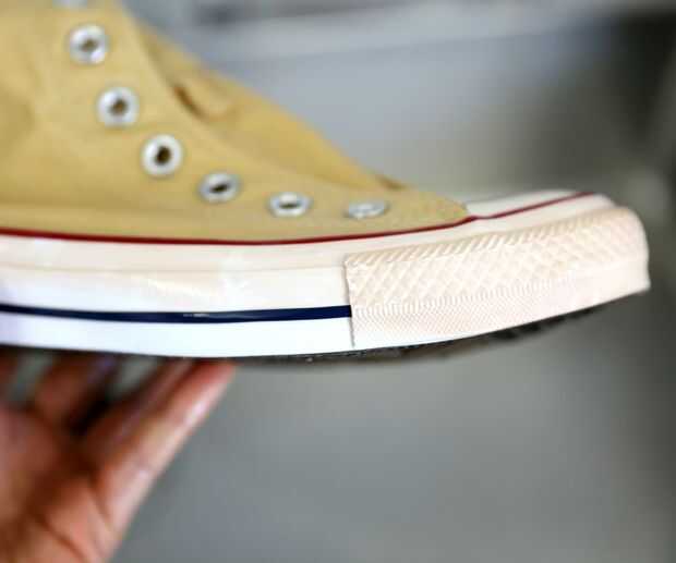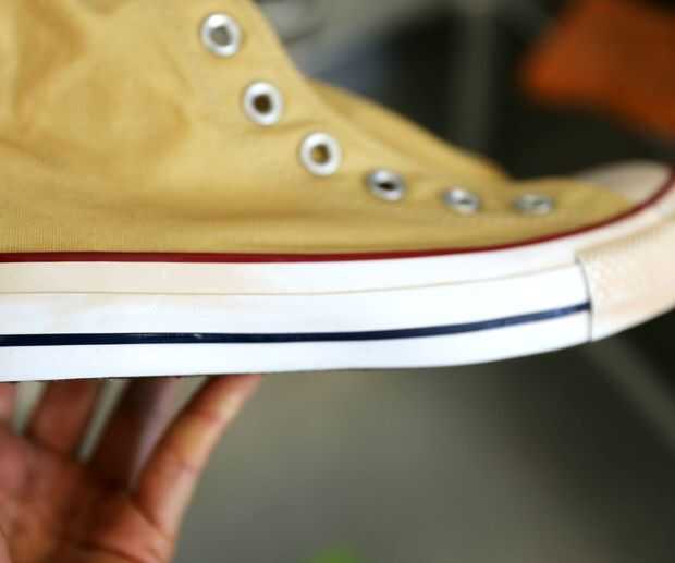 Soy consciente de que la posibilidad de que alguien más 'envejecimiento' de sus zapatillas es bastante delgada, pero por si acaso, aquí está cómo quitar cualquier coloración ocurre en las plantas de caucho blanco como resultado del proceso de morir.