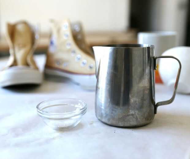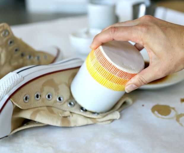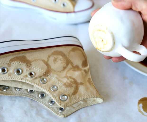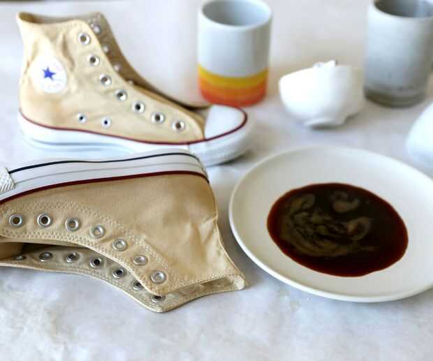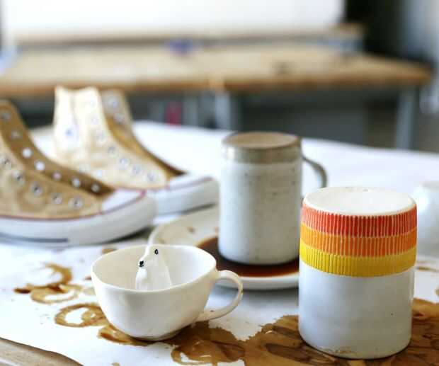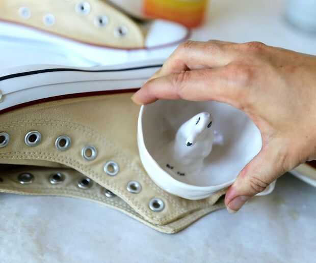 Quería utilizar los fondos de algunos de mis copas favoritas hechas por ceramistas locales de California para estampar un patrón en los zapatos.
