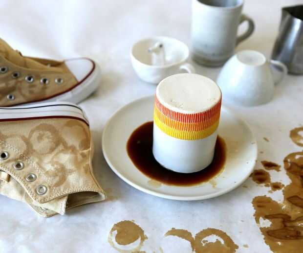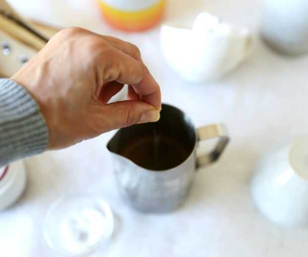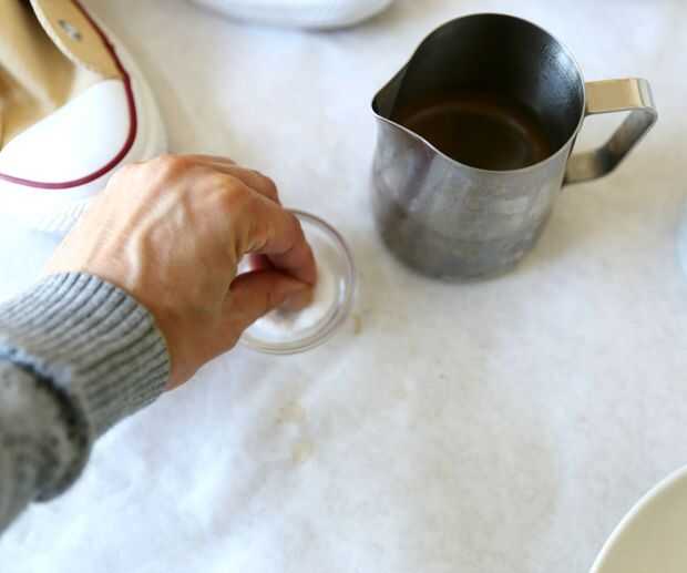 Para ello, he añadido un poco de sal a un shot de espresso doble y vierte un poco de café hacia fuera en un plato pequeño como un cojín de estampilla improvisado.
