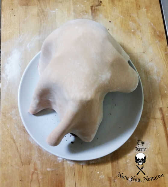 Desea trabajar con cuidado, presionando su fondant sobre el pastel y el moldeado alrededor de la forma de su cráneo.