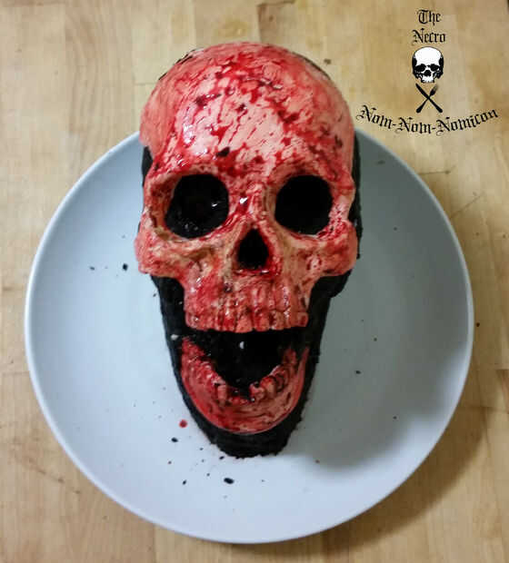Con un pincel único del alimento limpio, (tengo varios en mi arsenal de cocina que utilizo sólo para alimentos) empezar a pintar en su colorante de gel color rojo y marrón en su cráneo moldeado.
