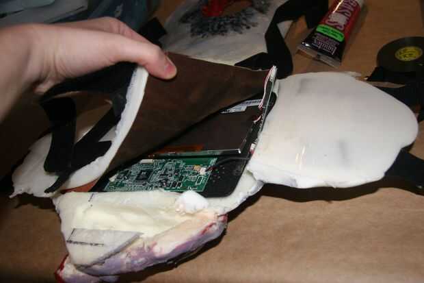 Decidí que con los monitores en los casos fue creando bulk muy rígida, así que quité. Ponerlos en los casos de vinilo suave, que viene con los monitores para conectar a los apoyacabezas de tu auto. Yo les intercala en cuero y la espuma. Este es el punto donde dañó el segundo monitor, haciéndola inútil.