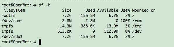 A continuación, reinicia el router. Una vez el router se reinicie completamente, puedes ejecutar df-h y si funciona, verás lo siguiente. Si se te muestra algo diferente, pues tienes volver a seguir los pasos otra vez (del formato) e intentarlo de nuevo.