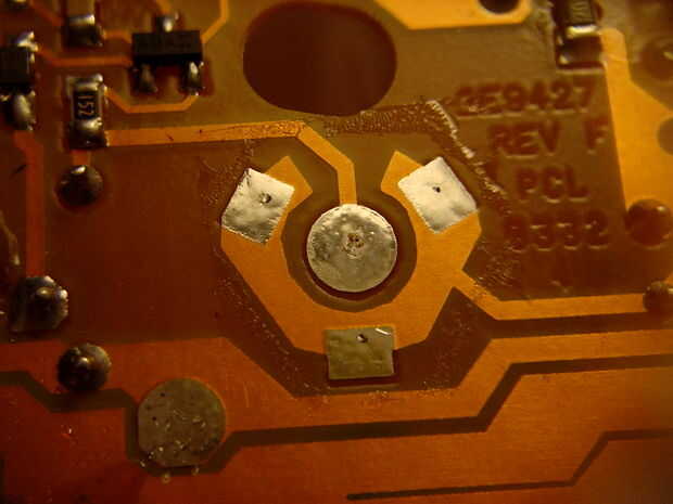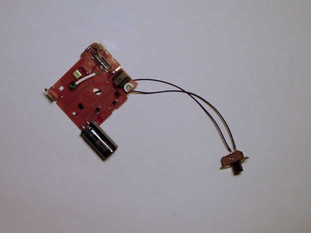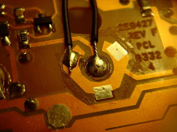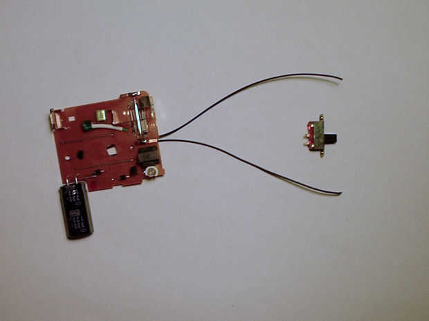 Soldadura de dos piezas de alambre en ambos exponen lengüetas de metal. Y un interruptor de carga 'nuevo' en los otros extremos de los cables de soldadura.