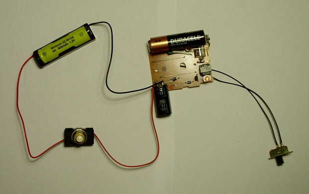 La vuelta a la carga interruptor y espere el neón/LED se ilumine. Cuando comienza a brillar intensamente, empuje el interruptor de botón y usted puede oír un fuerte 'POP'. Que está bien para al pop, muestra la batería ha sido zap es vivo! Pero sin duda los cristales de azufre realmente son vaporizados, zap la batería de Ni-Cad, una vez más...