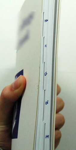 cada vez que añadir pestañas al lado de un libro para separar diferentes secciones, siempre terminan todos arrugado después de un tiempo. Para resolver este problema, cortar muescas pestañas
