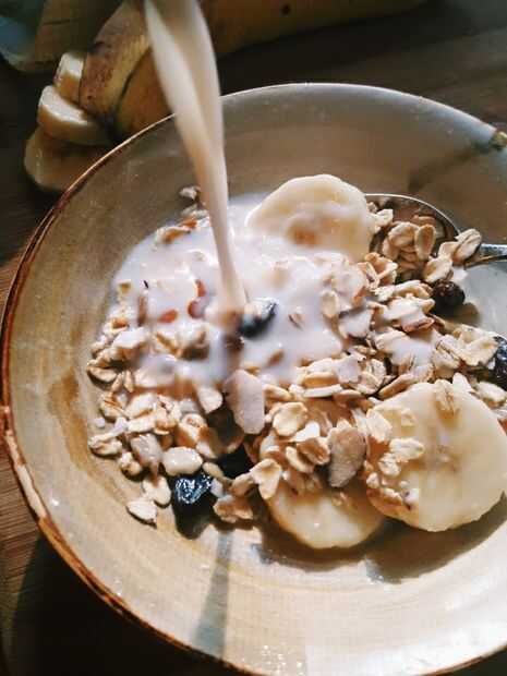 La forma más sencilla de servir el muesli es como cereal. Simplemente Vierta en un bol, añadir alguna fruta picada si se desea y agregar la leche.