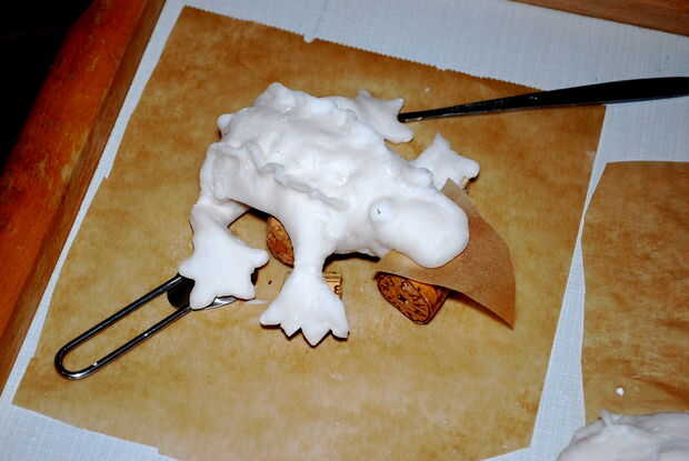 Cuando hice mi prueba de lotes formé una rana, un dragón bebé y un embrión de algo como un sello. La rana salió bien, mientras que el dragón de bebé (una mezcla de serpiente y Lagarto con ocho patas) no parecía tan grande. El sello de bebé funcionó bastante bien pero no muestra bien en las fotos.