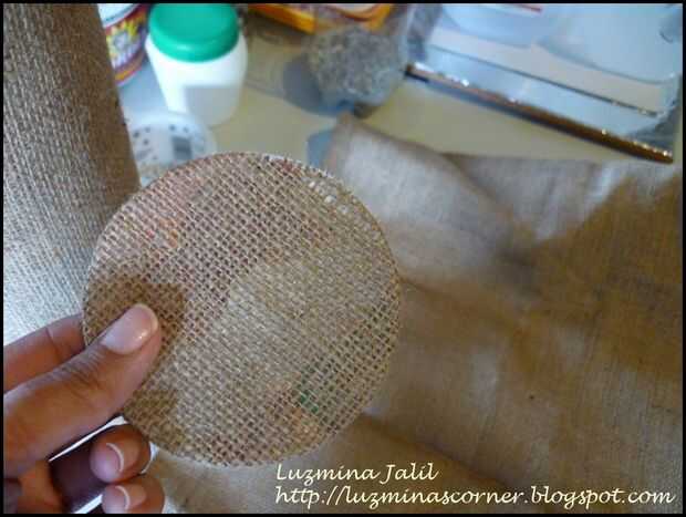 Aplicar correctamente el silicon frío en un lado de la cartulina y pegar a la tela a la misma. También, necesitará aplicar pegamento dentro del círculo y la tela de la forma en el círculo.