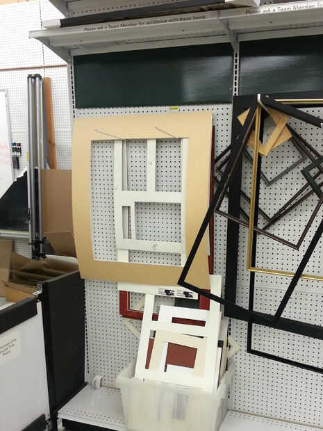 El rescatado marco utilicé no viene con un tablero de lámina perimétrica, la estructura interior que llama la atención a la pieza de ser enmarcada. Podría salir y comprar un tablero de lámina perimétrica a cortado a la medida, pero le pedí muy bien y tiene recortes para super barato. La que se muestra aquí fue de $2.