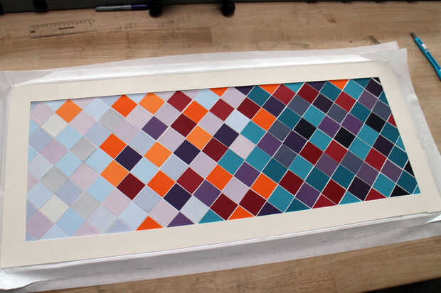 Después de que el panel fue cortado a la medida, se fue pegado directamente a la matriz de la muestra azulejos.