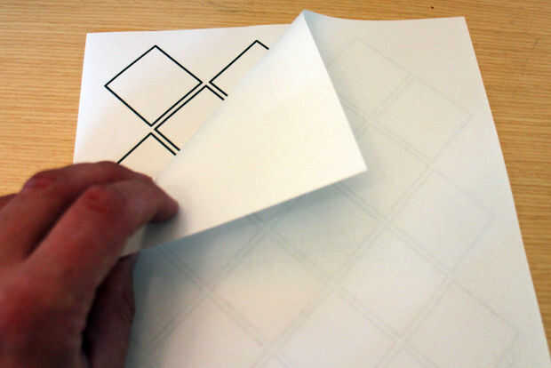 Se puede ver en la imagen que todavía puede hacer hacia fuera el contorno de la plantilla por debajo de una hoja blanca de papel, utilizando esta idea imprimí unos templates y asegúrelas con cinta hasta que tuve una plantilla que cubrió mi área enmarcada.