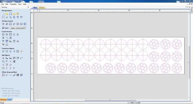 Ahora el panel de la izquierda de pantallas debe ser completo de herramientas de edición. En el menú principal hasta la parte superior, seleccionar archivo-importar-importar vectores. Se abrirá una ventana estándar pidiéndole que localice su archivo, búsquelo y haga clic en abrir. (si no ves el archivo, que no está buscando en la ubicación correcta, o lo guardó en un formato que no soporta el VCarve.) Cuando el archivo se abre, puede o no puede colocar sus rutas donde esperas. Si son no que esperas, usted puede fácilmente en el centro - bajo la transformación objeto dirección, busque un botón llamado alinear los objetos seleccionados (parece un cuadrado con cuatro flechas apuntando en cada lado de la caja, o suspender sobre cada botón lentamente y el nombre aparecerá. Clic en el botón cuando seleccionan a sus rutas, automáticamente centran los caminos dentro del documento. Como nuestros caminos se hayan completado, ahora podemos dejar el dibujo parte de diseño del software y entrar diciendo VCarve lo que queremos que haga con estos caminos de un corte, perforación, escopleo con gubia de punto de vista.