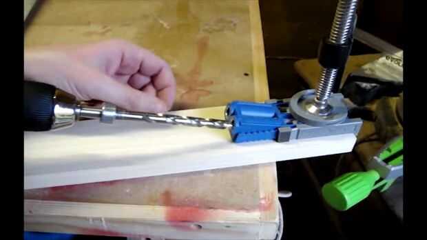 • Luego fijar las piezas juntas y utilizar mi kreg jig para hacer los agujeros de bolsada