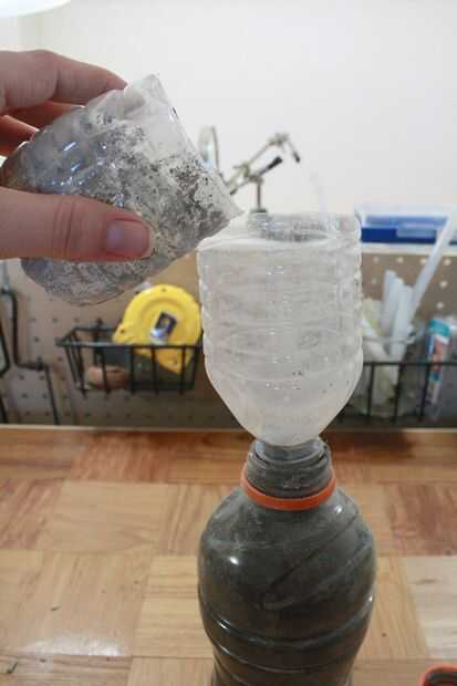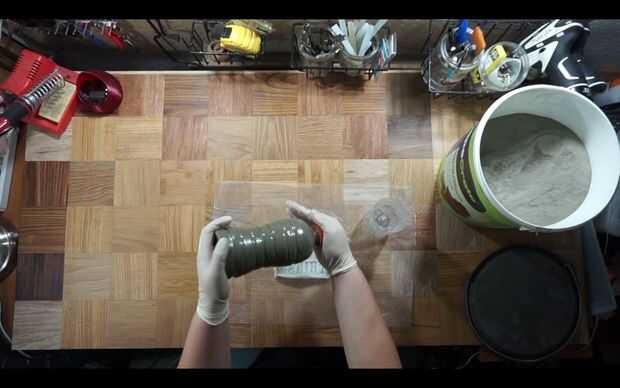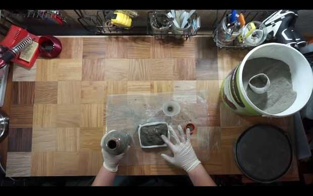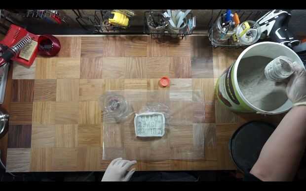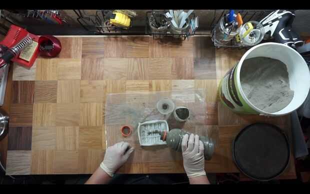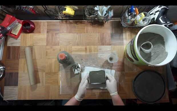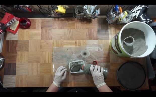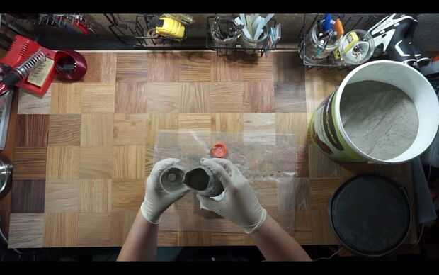 Estos no tome un montón de concreto, tan sólo un poco de la mezcla a menos que quieras un gran tope en forma de Copa (que es genial también). Es mejor mezclar más cerca a la consistencia de fundición que la consistencia de la arcilla, asegúrese de que obtener todos los detalles en los moldes y para minimizar las burbujas. Mezclé mi concreto en una botella de gatorade, usar una botella de agua a la mitad para la taza de medición y embudo, luego sacudió vigorosamente para mezclar. Esto funcionó bastante bien y no era casi tan sucio como con un cubo.