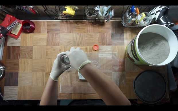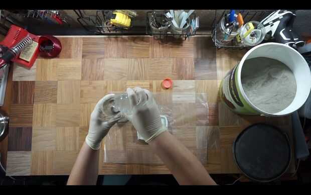 Después de que haya terminado, toque en todo el asunto sobre la mesa un par de veces para la buena medida. Usted conseguirá más burbujas que suben, que es bueno. Mejor fuera que en. Cubrir con plástico y dejar durante un día o dos.