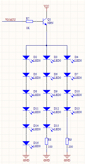 Letra U - se puede dividir en 3 grupos de 5 LEDs, usted necesitará agregar un resistor de 100 ohmios en cada grupo.