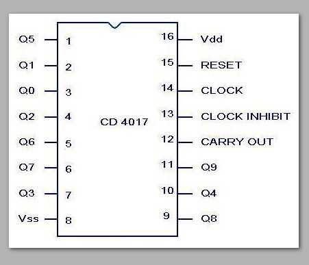 Las etapas de salida de 10 no están en orden como los pasadores. Para conseguir el out pone a FLASH en orden del 1 al 10 la orden pin será: 3-2-4-7-10-1-5-6-9-11. Se restablece el número 15. Con decir 4 salidas y restablecer la espalda enviaría la secuencia 5 con conector de 15.
