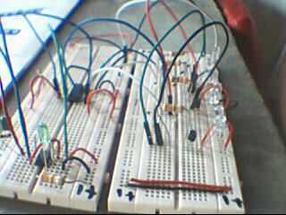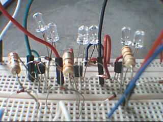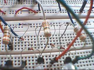 Esto es sólo 4 etapas de este circuito. Tiene muchas conexiones de los diodos que simplemente no había espacio suficiente en este tablero de pan poner todo completo... Esto es suficiente para ver cómo funciona y para hacer las modificaciones que puedo necesitar.