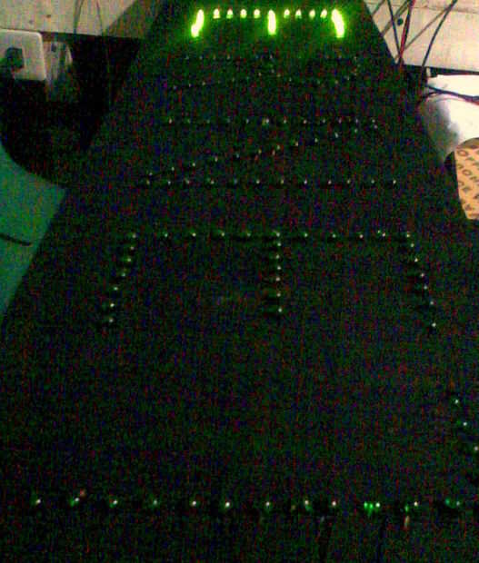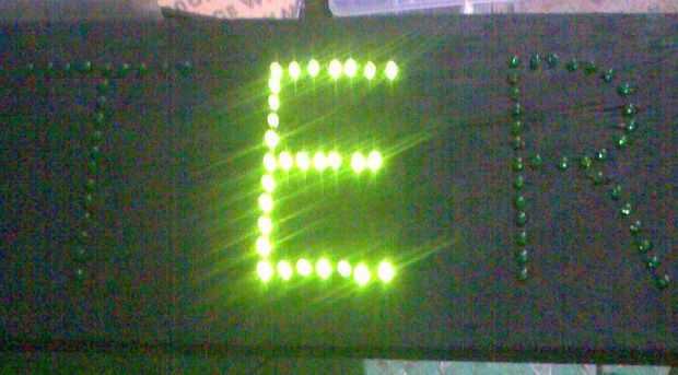 Después de montaje y soldadura de cada letra, he probado la función de la carta encendida. Observé que tenía 4 LED que no funcionaban. 3 fueron en las esquinas donde se reúnen la mayoría de los conductores. Donde fue la concentración más de calor. Sustituido los 4 LED, prueba otra vez y bueno para ir.