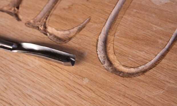 Las arboledas en las cartas ahora pueden ser arregladas para arriba funcionando a través con el cincel gubia pequeña. Utilice la herramienta multipropósito con un accesorio de la amoladora para rematar.