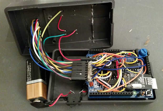 Desde que se utilizaron casi todos los pines Uno, hay un montón de cables dentro de la caja - apenas se cierra!