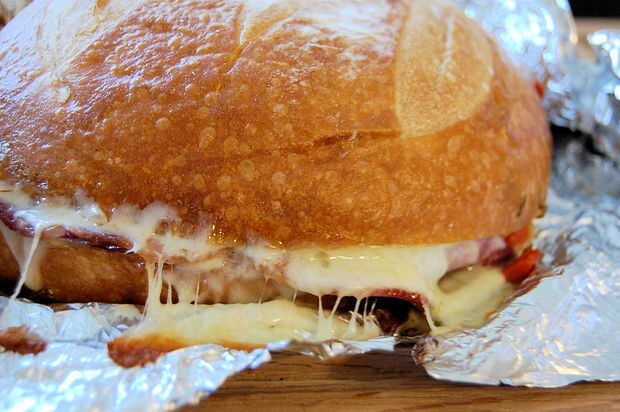 Rodillo de tambor por favor... Permítanme presentarles a mi receta. Ligeramente con mantequilla pan francés tostado no fritos con capas de jamón, salami y queso y rematado con una mezcla de boca de riego de hortalizas en escabeche picante, rojo y mostaza de Dijon vinagre de vino. La singularidad viene con lo que sucede en la extensión oliva pintada en ambos lados del pan. No dude en utilizar diferentes ingredientes que mi propio pero lo que usted hace no olvide incluir aceitunas. Usted acaba de conseguir que las aceitunas! Ahora por supuesto hay algunos otros ingredientes en la mezcla pero son los más importantes. Estos ingredientes son los que te dejará sin aliento pensando que este sándwich ha sido toda mi vida. El último golpeador a emparedado-lenta cocción. Después de un rápido tostar el pan en un principio, el sándwich final es lento y envuelto en papel de aluminio cocido en el horno a 170 durante 3-4 horas. Sí, 3-4 horas. Usted puede vencer esto! Sólo se puede superar este sándwich.