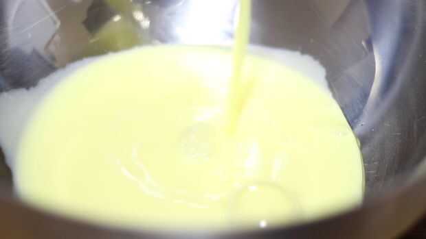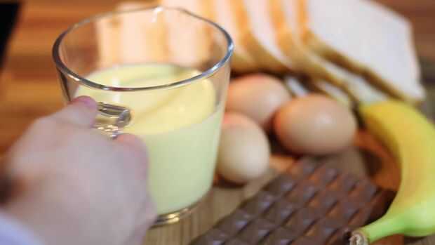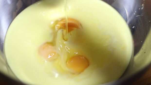 A continuación, mezclar los ingredientes húmedos, en un bol grande Vierta en el batido de plátano, podría también utilizar leche para esto en su lugar pero por qué no ir todos hacia fuera en el sabor del plátano. A la leche agregar 3 huevos y batir los ingredientes, no hay necesidad en Bata, solo suficiente para incorporar los huevos y la leche. Cambialo a un lado.