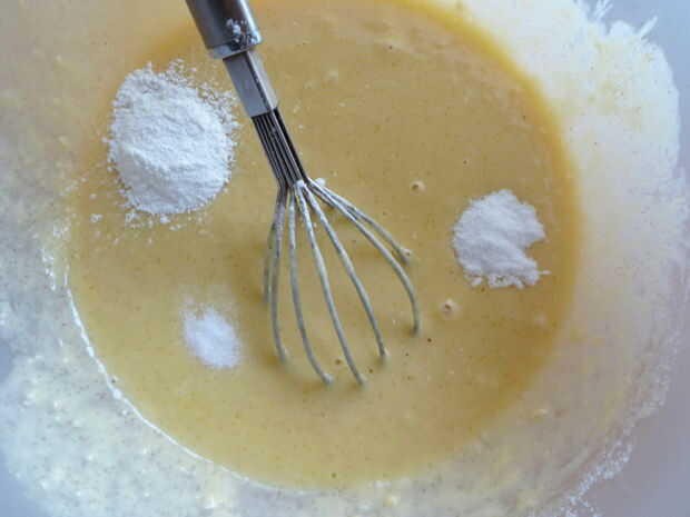 Luego el polvo de hornear, soda y vainilla en polvo.
