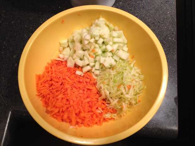 Precalentar el horno a 375 ° F. Comenzar por pelar la zanahoria, el calabacín y la manzana. Picar la manzana en pedazos mordedura-clasificados y Ralle las zanahorias y el calabacín. Generalmente tarda 2-3 medio de tamaño medio un calabacín y zanahorias.