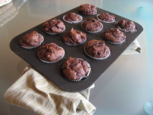 Cuchara de masa/pasta en latas cupcake engrasado, forrado. Llenar unas 3 cuartas partes del camino a la cima. Forma es un poco irregular debido a la densidad de la mezcla.
