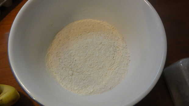 En un bol grande, mezclar la harina, la sal y el bicarbonato de sodio.