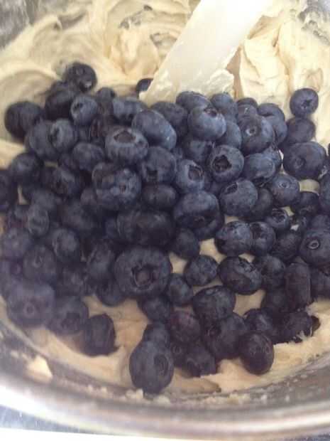 Deliciosos muffins con un centro de arándano. Esta receta es para 16 magdalenas – Yum!Ingredientes280g (10oz) harina de yo levantarpizca de sal100g (40oz) de azúcar impalpable1 plátano picado1 huevo240ml de lechemanteca 85g (3oz) derretidoarándanos d